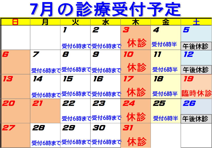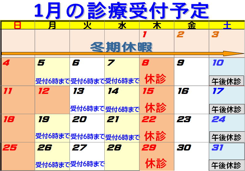 ※日曜日と祝日、木曜日、土曜日午後は休診です。